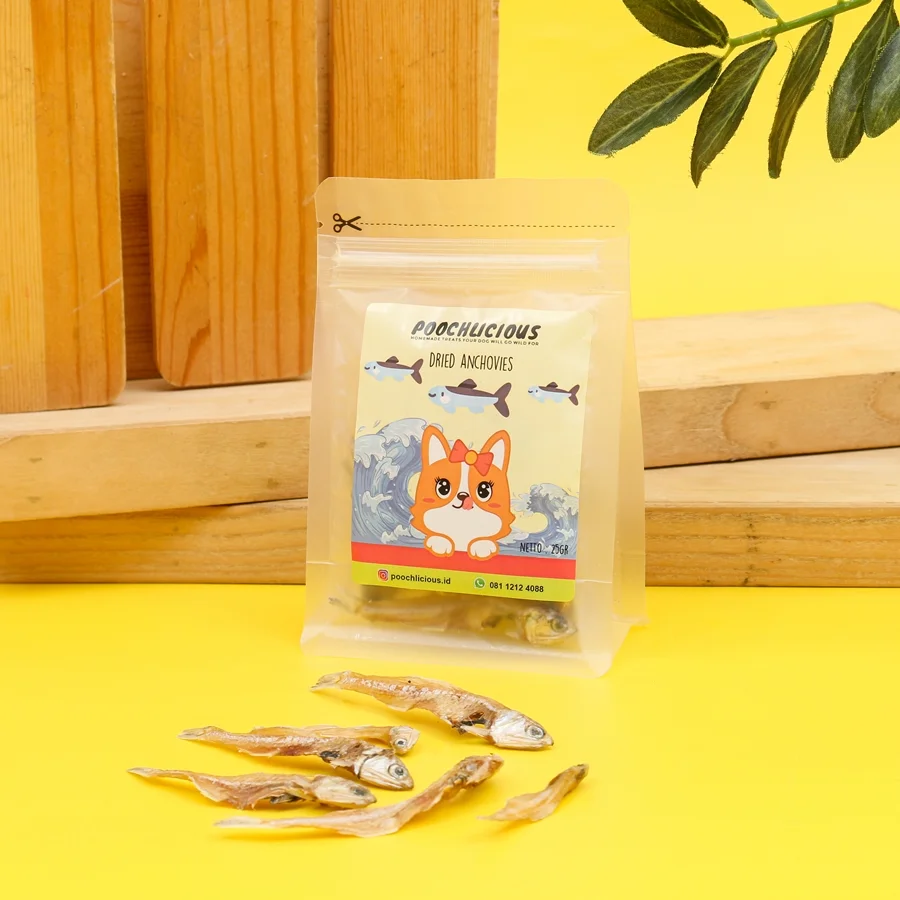 Jerky Anchovy adalah ikan teri utuh yang dikeringkan tanpa garam atau pengawet. Renyah, gurih, dan penuh kalsium—cocok untuk anjing segala usia.