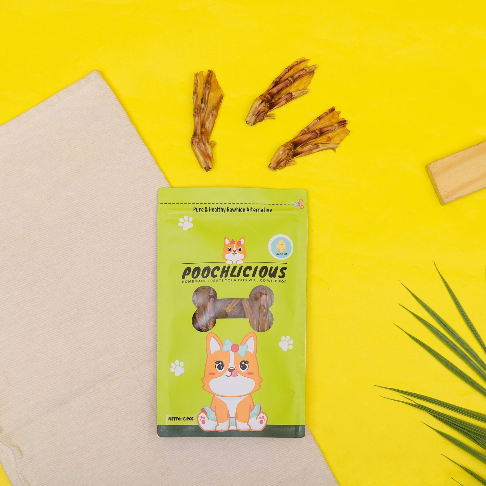 Duck Feet adalah camilan renyah yang mengandung glukosamin alami untuk kesehatan sendi. Sangat cocok untuk anjing senior maupun dewasa sebagai snack sehat dan fungsional.