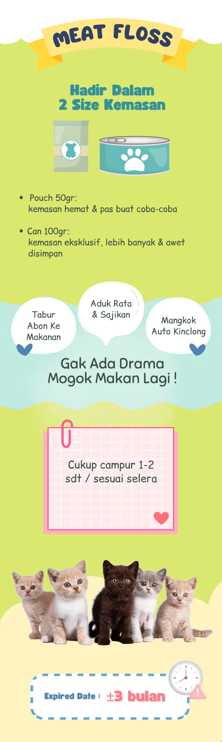 Luna Cat Snack Tuna Floss adalah camilan lembut berbentuk serabut yang terbuat dari 100% daging tuna segar tanpa tambahan pengawet, pewarna, maupun perasa buatan. Teksturnya halus dan mudah dicerna, ideal untuk kucing segala usia, termasuk anak kucing dan kucing senior. Kaya akan protein dan omega-3 alami yang mendukung kesehatan bulu, kulit, dan fungsi otak. Dapat disajikan langsung sebagai camilan atau ditaburkan di atas makanan utama untuk menambah aroma dan selera makan.
